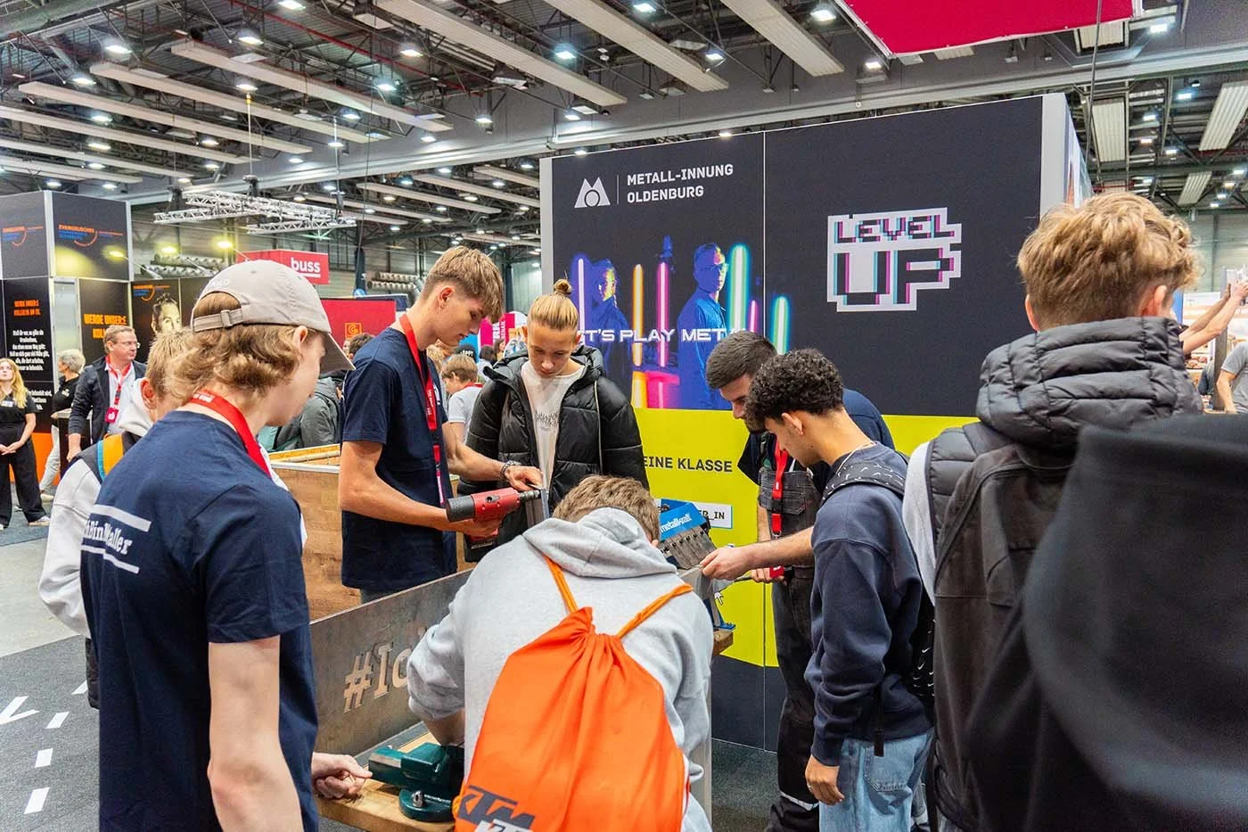 Die Grundidee ist nicht neu: Bereits im vergangenen Jahr hatten sechs Innungen mit einem innovativen Konzept die Messe aufgemischt und am Gemeinschaftsstand den jungen Besucherinnen und Besuchern den Bau einer eigenen Schreibtischlampe angeboten. „Indiesem Jahr ging es vor allem darum, das bestehende Konzept zu optimieren, Fehler auszumerzen und Beratungsmöglichkeiten auszubauen“, weiß Jan Oltmanns, Obermeister der Metall-Innung Oldenburg. Neben den bisher vertretenen sechs Gewerken (Maler- und Lackierer-, Metall-, Tischler-, Elektro-, Fliesen- und Natursteinleger-Innung Oldenburg sowie der Innung für Sanitär- und Heizungstechnik Oldenburg), wurde in diesem Jahr die Innung für Land- und Baumaschinentechnik dazugenommen, um die anderen Standabschnitte beim Bauprojekt zu entlasten und Beratungskompetenz für einen weiteren Beruf zu schaffen. „Den netten Nebeneffekt, einen größeren und prominenter positionierten Stand, haben wir natürlich gerne mitgenommen,“ lacht Stefan Bohlken, Obermeister der Fliesen- und Natursteinleger-Innung Oldenburg.